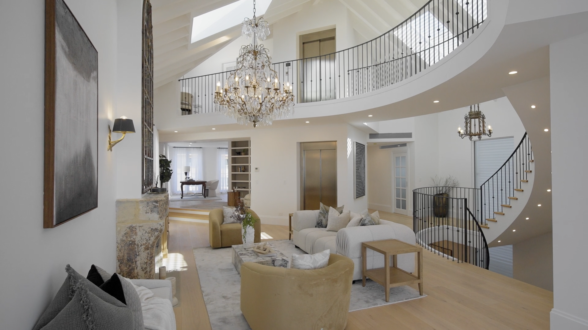 Across three levels, the house balances scale with intimacy. Living areas stretch wide and outward, while private rooms fold back in, layered with detail and warmth. Six bedrooms and a suite of bathrooms are each treated as individual spaces, with finishes that feel crafted rather than repeated.